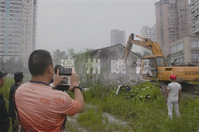 温州网讯 昨天上午,随着挖掘机的轰鸣声响起,滨江商务区9号地块一拆迁户的依法强拆正式开始。十来分钟后,70多平方米的二层砖瓦房被拆平,阻拦该地块建设长达3年之久的最后一拆迁户被成功拆除。来自鹿城区法院、执法局等部门的工作人员,将拆迁户有关人员劝离,并清理有关财物。