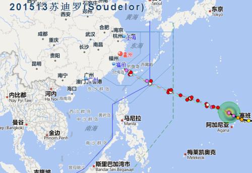 今年第13号台风“苏迪罗”(热带风暴级,英文名:Soudelor;名字来源:密克罗尼西亚;名字意义:传说中的酋长)于7月30日晚上8点钟在西北太平洋洋面上生成。