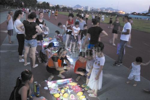 昨晚7点左右,众多市民在瓯海中学内进行散步等休闲活动,还有人趁机摆起了地摊。