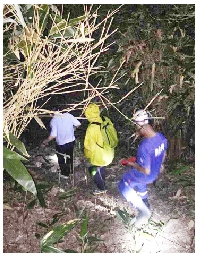 怕程先生虚脱,需要尽快下山,林警官又联系了当地的蓝天救援队员,和救援队员从大龙湫景区上山,直奔乱石岗。