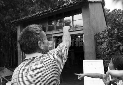 吴银干冷静下来,他先下床,踩踩楼板还算结实。之后,他让妻子跟在后面,两人摸着墙漂到一楼门口,可门已全部在水下,而且还上了锁,打不开。他们一边抓住窗户,一边喊“救命”。