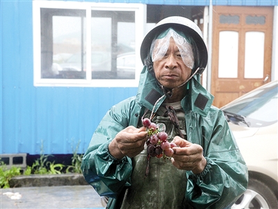 果农捧着葡萄,欲哭无泪。魏成玮摄