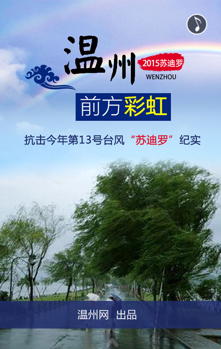 这一次,我们在短短时间内,策划推出了以“温州前方彩虹”为主题的《抗击今年第13号台风苏迪罗纪实》手机专题,得到大量转发关注,许多网友表示,边看边流泪,希望灾区人民加油。