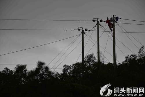 洞头:供电员工苦战过江线三小时 半屏恢复供电