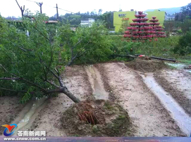 台风使民族花海里珍贵苗木倒伏,几十万株种苗被水冲走。(老钟/摄)
