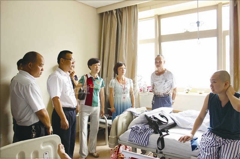 温州网讯 前天下午,在温州医科大学附属第一医院,汇集同人花园小区居民爱心的12.8万元善款,交到了身患白血病的23岁小伙儿——李光众之手。