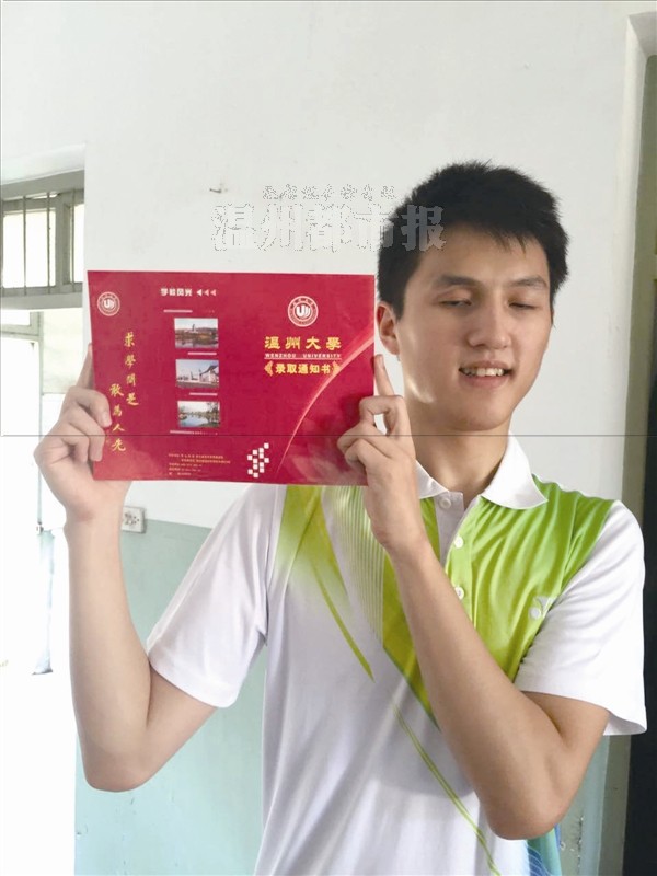 今年夏天,他参加盲人高考,以文科570分的成绩被温大录取,终于圆梦。