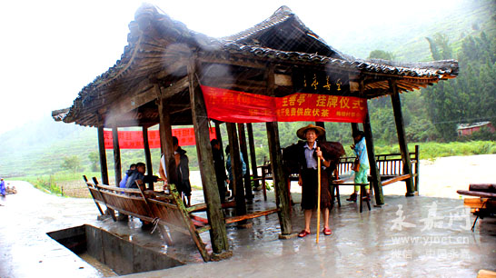 近日,该清朝茶亭“至善亭”举行了挂牌仪式。“至善亭”位于梅坦村东面的上垟田,通往乐清、黄岩古道交汇处,南面为上垟庵,北面群山环绕,是一座木制结构的凉亭,部分瓦椽有过翻新,亭子具有浓郁的农村生活气息。得知“至善亭”重新恢复烧制伏茶,村民谷敬进和妻子潘茶叶以及村民潘春香于早上6点不到就前来帮忙,开始准备烧制伏茶。伏茶是由夏枯草、荷花叶、甘草等10种中草药煮成的茶水,记者在茶亭里看到,许多人见有供应免费伏茶,就上来“讨”一杯喝喝,给自己消消暑。现场的志愿者们正在忙碌着,他们中有的倒伏茶,有的在清洗杯子,脸上洋溢着帮助别人所带来的欣慰笑容。