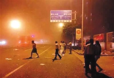 “我当时正在出租车上,司机师傅说车怎么晃了,一抬头整个天都红了。”距事发现场约3公里的黄先生介绍,感到晃动后,天空腾起蘑菇云,“当时的天跟下午四点的天一样,非常亮。几分钟后,第二个蘑菇云腾起,火焰更大。”
