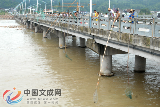 温州网文成支站讯 珊溪镇是此次“苏迪罗”台风重灾区,强降水导致珊溪水库水位超过了142米,直逼警戒水位,8月11日上午,珊溪水库开闸进行泄洪,引来不少市民在水库大坝下游的桥上或河里冒险捞鱼。 记者在此提醒,由于水库泄洪,下游河内水流湍急,市民一定要注意安全,莫拿生命开玩笑。