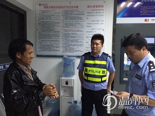 大雨滂沱中,执勤交警发现一名40岁左右的男子,独自在大雨中,全身湿透,十分落魄。交警上前询问得知,该男子姓杨,贵州人。杨某跟着师傅到福建工作。因在福建没赚到钱,师傅将其扔在了福建。他人生地不熟,又身无分文,便想步行回温州。走到分水关口,他饥肠辘辘,谁知又遇暴雨。