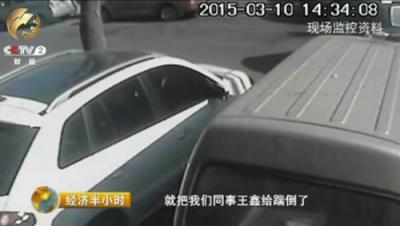 王小文:就在这个位置,然后他就往车往回倒,倒以后把王鑫碾压,在车底下带着,带到这个位置。我们一看这个情况,我们大伙就急了。然后我是直接冲到车的左侧,用警棍把玻璃打碎了,然后包小林在右侧的时候,正好门开了,又把包小林的眉骨给磕破了。