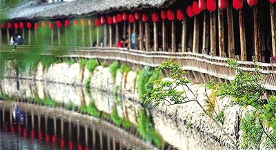 踏入丽水长廊的刹那,依然有一种惊艳,长街中央路面的蛮石,已被岁月消磨得坑坑洼洼,阳光穿过树梢,将古老的窗格、素净的粉墙以及青瓦和人影,一并映在水中。闲适的人们迈着淡定的步子,乡村小店含着旧时的影子,飘着饭菜香的小街也飘着炊烟,让游子的心底漾起一份如归的感动。