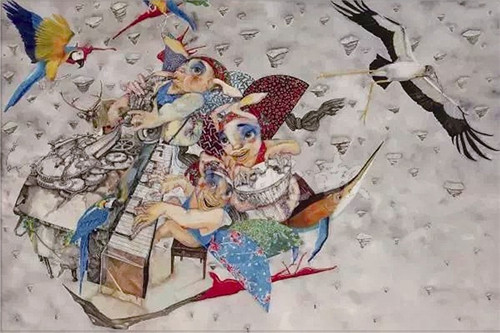 林剑峰的画充满着灵性的想象,他说:“孩子的灵魂是最纯净的,内心充满无限遐想,我有时候觉得自己像一个孩子,大脑中充满了各种各样的奇特想象,而且可以把它们画出来,这是让我觉得最愉快的事情。时间像一把剪刀慢慢地修缮着自己的心灵,改变了我的世界观,面对丑陋不能用丑陋去对抗,那样会让自已变得很丑陋,要传递正能量,学会用美好去感化他人。飞翔、自由、包容、解脱、平和、释然……已经成了我画面的主角,《绿野仙踪》、《一座城池》、《一花一世界》、《玩偶之家》这些作品表达了我对生活的寄托和对未来生命的感知。”