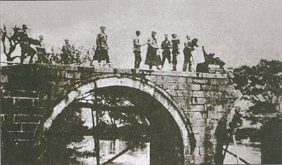 中国第19集团军将领在官桥观察敌情。