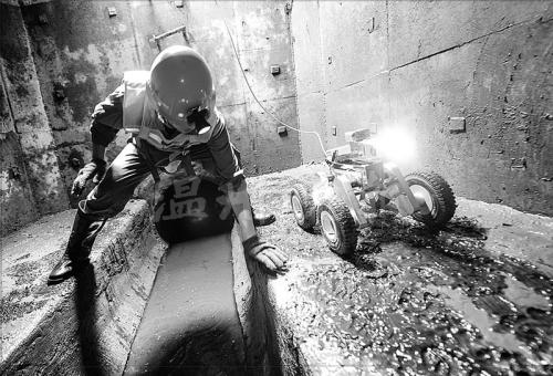 地下的高剑开始就着头上安全帽上的探照灯,检查起管道里的情况。首先是判断管道内是否有积水,能否供cctv机器人进行复检作业,然后是查看每一节管道的表面是否光滑,接缝处是否严密,以判断管道是否出现变形或是管节脱节。这时他的仔细和耐心显得非常重要。高剑告诉记者:“如果管道出现破损、变形,管道的水流则无法畅通,若是管节脱节则更会导致管节的沉降变形,最终都会造成‘肠梗塞’。”