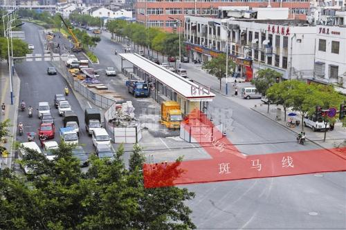 乘客从道路两侧经斑马线过街,进入位于路中的站台。未来,部分站台旁还有望建成过街天桥,市民进入站台更加安全,同时减少乘客过马路对机动车辆的影响。