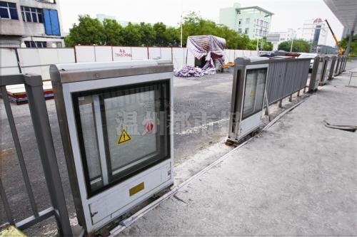 温州快速公交BRT站台采用路中侧式,右侧开门,站台长60米、宽3米,可停2辆长度为18米的大巴,站台高度与车辆挡板高度基本持平。
