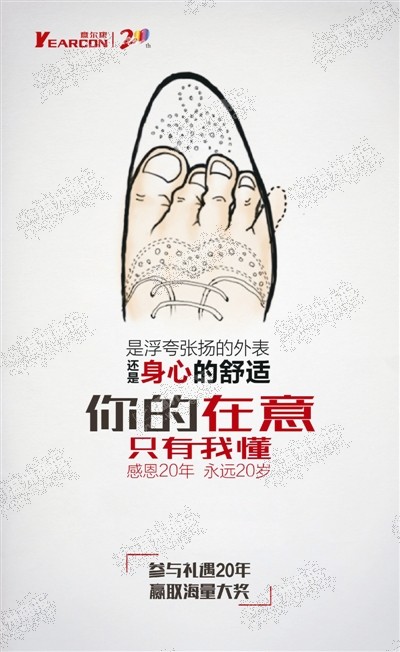 温州网讯 都说同行是冤家,近几年这一趋势似乎愈演愈烈。无论是加多宝和王老吉、神州专车和Uber,还是淘宝、京东和苏宁……各行各业都开始盛行直接在广告中来跟对手掐架。近日,温州著名鞋企意尔康发布的20周年庆“在意体”海报走红网络,却被网友直指内容“挑衅”多家鞋企,并坐等围观皮鞋行业掐架,这到底是怎么回事呢?