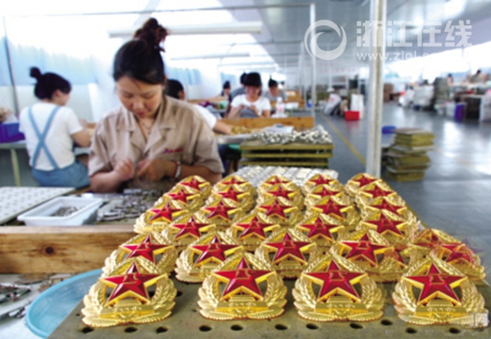 浙江在线记者了解到,这家企业成立于1983年,曾长期接收来自美国、俄罗斯、沙特阿拉伯等国家的军用、警用徽章订单,还参与过2007年解放军换装、2008年北京奥运会等重要活动。提到这次任务,工程师陈勇笑称是“一场意外的惊喜”。去年工厂接到一项来自军方的任务,要为仪仗队战士生产3000多套服饰和各类徽章,但具体用在什么场合,全是保密的。直到几周前,陈勇才得知,原来这些产品是要被用于9月3日的阅兵仪式。