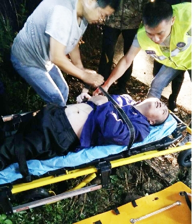 4时许,从谷底传来好消息,救援人员发现了被困者。由于被困者受伤,救援人员让他躺在多功能担架上,然后将他抬上山。