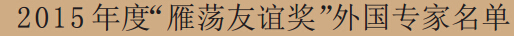 15名外国专家获2015年度“雁荡友谊奖”