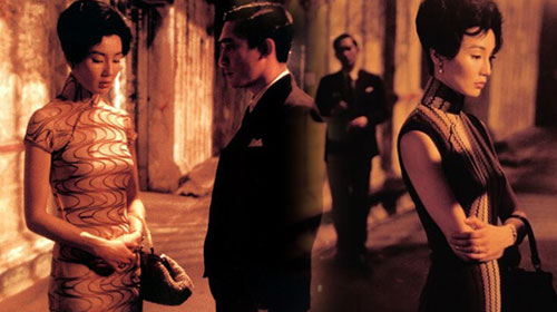 影片中张曼玉总共换了23套绣工精细,风格不一的旗袍。每一件旗袍都代表着戏中女主角张曼玉不同心境,当和梁朝伟在一起时她的旗袍花色艳丽,做工精细;她后期出场时的旗袍颜色转淡,刺绣简单。在那些令人炫目花团锦簇的旗袍包裹下,张曼玉苗条的身材和婉约的气质时而张扬恣肆,时而深沉如水,散发着女人柔美成熟的气息。