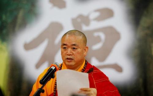 释永信在2015年少林问禅之“机锋辨禅”活动开幕式及《禅宗大典》发布会上致辞。