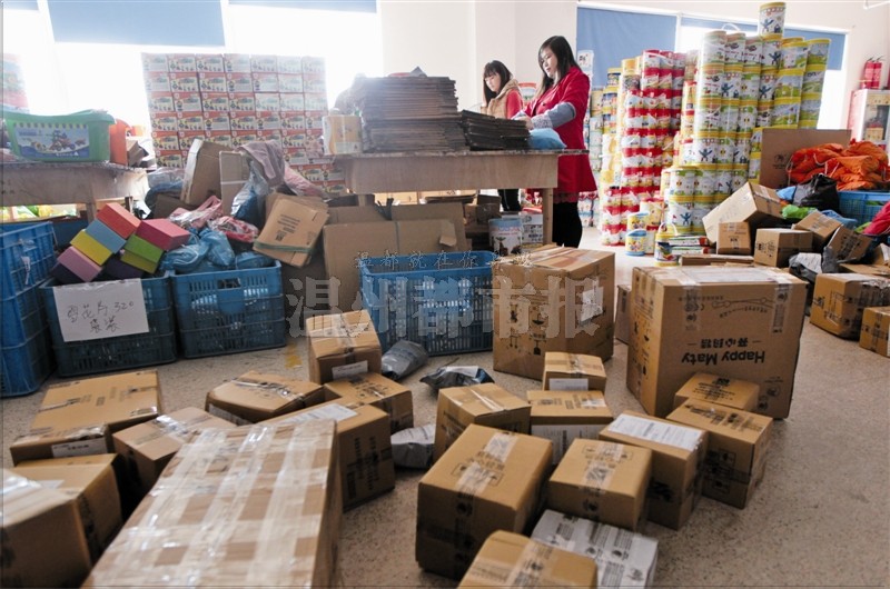 11月3日,“淘宝村”一家天猫店员工正忙着给顾客发货。