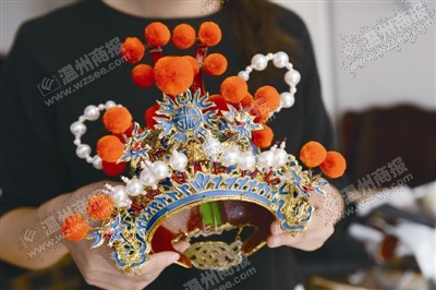 温州网讯 盔头是指中国传统戏曲中,演员表演时头上所戴的头饰。苍南金乡夏家,是拥有近300年盔头制作历史的世家,夏益锦戏曲盔头数百年来享誉梨园。