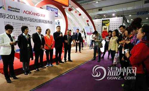 温州网11月13日讯(记者 张湉 王赛珍/摄)奥康国际正式冠名赞助2015温州马拉松。11月13日,奥康国际2015温州马拉松新闻发布会在温州国际会展中心召开,奥康国际、温州市体育局领导共同出席温马冠名签约仪式。同时,首度公开亮相温马比赛装备、奖牌。