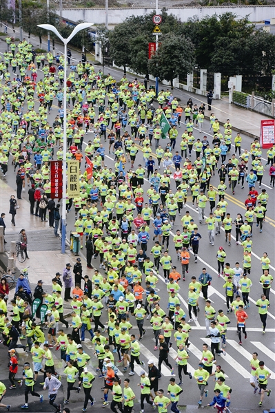 早上8点开赛,我国中长跑著名女选手、本届温马形象代言人孙英杰等人在队伍最前面领跑,先是全马选手出发,然后是半马选手最后是迷你选手依次出发,万人跑温马犹如万马奔腾,场面相当壮观。