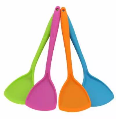4、硅胶锅铲,因硅胶是一种高活性吸附材料,不溶于水和任何溶剂,无毒无味,除强碱、氢氟酸外不与任何物质发生反应,即使用微波炉高温加热也不变形或释放有毒物质;另外好的硅胶具有自动消毒功能,不沾物质,容易清洗,因此硅胶也是现在好多时尚家庭的首选厨具材质。