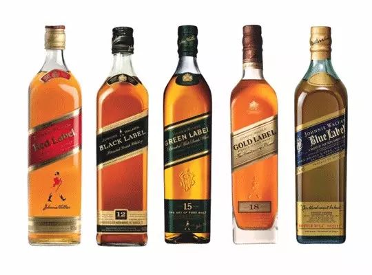 第一款推荐的调和威士忌来自威士忌大厂尊尼获加(Johnny Walker)。尊尼获加的威士忌在国内十分常见,我们熟悉的就有红牌、黑牌、金牌、蓝牌等(当然,一般酒吧中都称之为“方”,例如红方、黑方)。新手往往会搞不清这些颜色的涵义。其实,这些颜色也就是尊尼获加不同类型、不同档次的划分,通常的排序是按“红黑绿金蓝”,档次和价格依次升高。而中间又有双倍黑、双倍绿等副线。