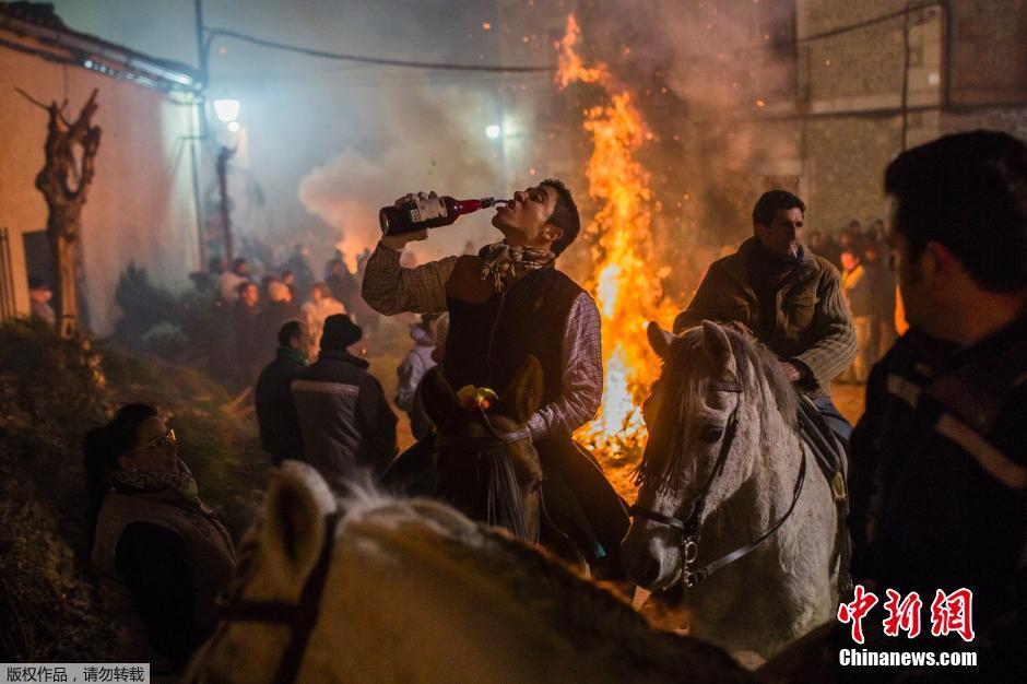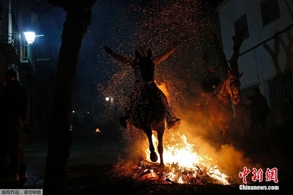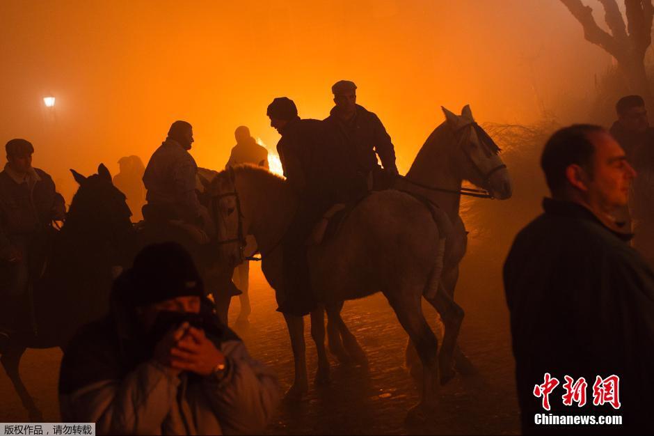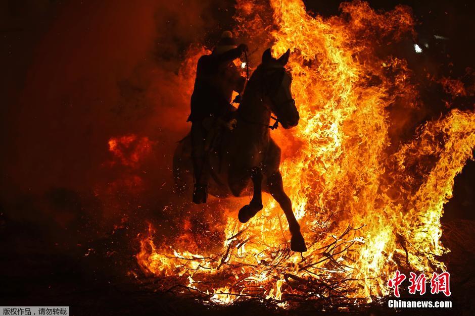 西班牙勇士骑马穿烈焰 庆祝圣安东尼节