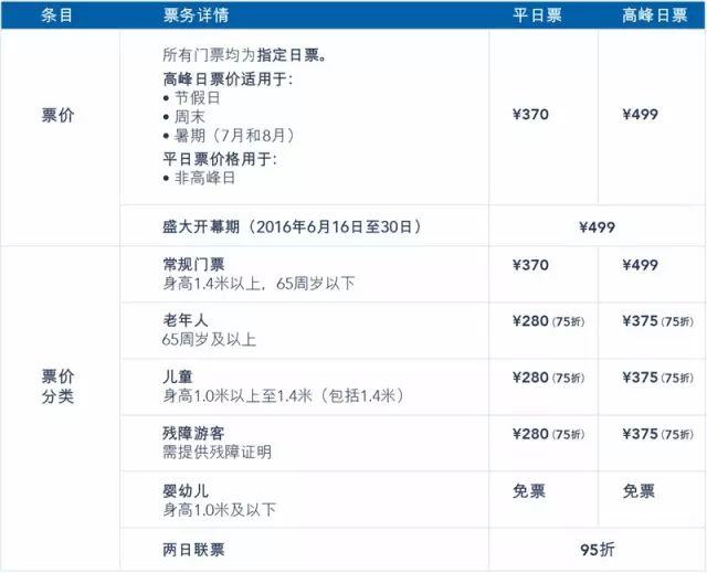 上海迪士尼票价