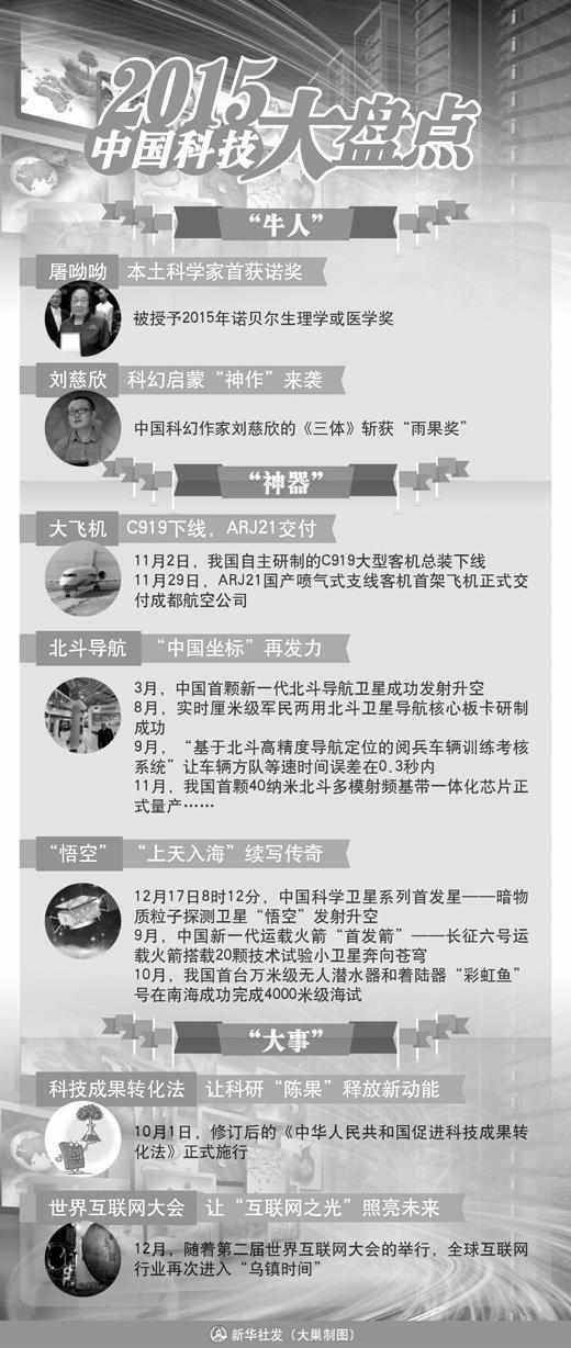 逐年提升的科研经费投入是我国科技发展的重要保障。图为2015年的中国科技成就。新华社发。