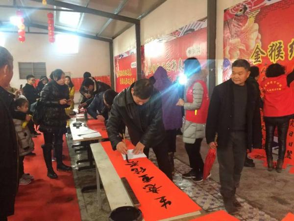 本次活动设置了非遗文化区、游戏互动区、特色年货区等诸多项目,市民可以到现场感受浓浓的年味。活动现场,志愿者们为村民准备了丰富的民俗文化大餐:金猴拜年、财神送财、福到万家、灯笼DIY、免费赠春联等趣味十足的新春民俗活动,更有捣年糕、米塑、糖塑、剪窗花等精彩非遗表演。特色年货区,志愿者们为村民准备了洞头番薯粉、瑞安茯苓糕、永高鱼饼、梅头虾虮等温州特色年货。民俗活动受到村民们的热烈欢迎,各个展示点和活动前面都是人头攒动,热闹非凡,为了活动更好地开展,青年志愿者也积极投身其中,除了维持现场次序外,还一起帮各个点上做好后勤服务,虽然在小寒潮的影响下气温较低,但志愿者忙碌的身影给前来参加活动的村民们带来了暖意。在活动现场,特色的“拼字龙”舞龙队,舞出了“天下太平”等字,为老板姓们带来新春祝福。