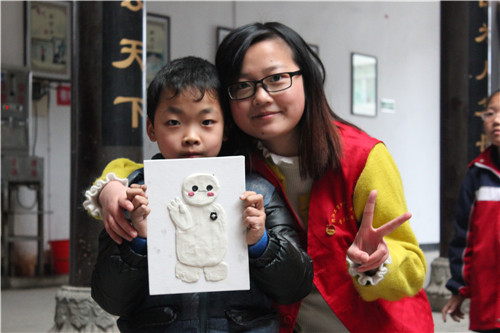 瓯塑瓯绣是温州民间传统技艺的精华代表,本次活动送瓯塑瓯绣等传统技艺下乡是重点。这些温州的老手艺通过学生们的叙述和展示大放异彩,与历史悠久、结构古朴的文化礼堂环境交相辉映,吸引了村子里的小朋友参与到活动中。通过手工小课堂的形式,学生们一对一手把手教小朋友们学习技艺,让孩子们对于这种古老的温州文化遗产有了鲜明形象的认识。