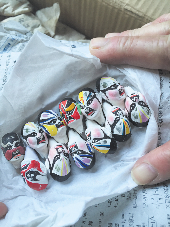 “彩亭上装饰的纸人头部都是用泥做的,用陶模做成泥人头后在太阳下晒干,再经过粉涂、上色、画上眉目,就成了悟空、观音、包公、七仙女等各色人物。不同身份的脸型模样要不同,不能千篇一律。”陈筱祥说。