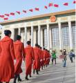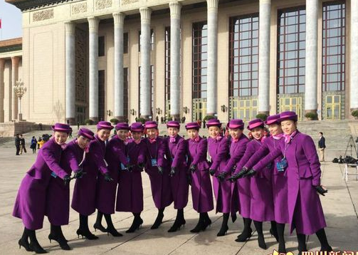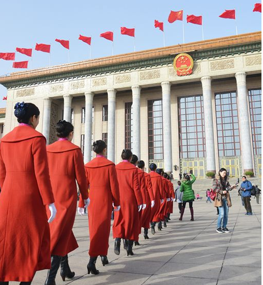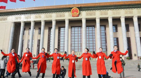 工作人员在人民大会堂前合影
