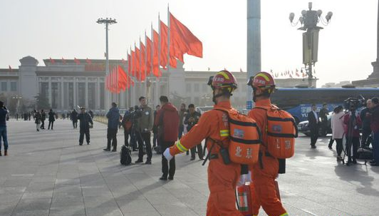 走上执勤岗位的消防人员