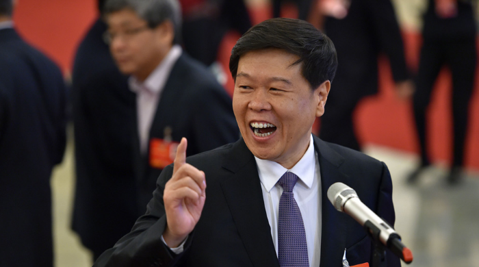 3月13日,十二届全国人大四次会议在北京人民大会堂举行第三次全体会议。国家税务总局局长王军在两会“部长通道”接受记者采访。 中新社记者 金硕 摄