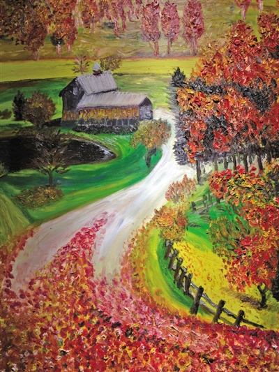 父母有意识地引导他,有时候拿一张风景照让他临摹,他只要五六分钟,便把整幅画面的轮廓勾勒出来了,再加上他的自由发挥,每一幅画都成了一幅灵动而有意境的好作品,连很多正常人都难以企及。