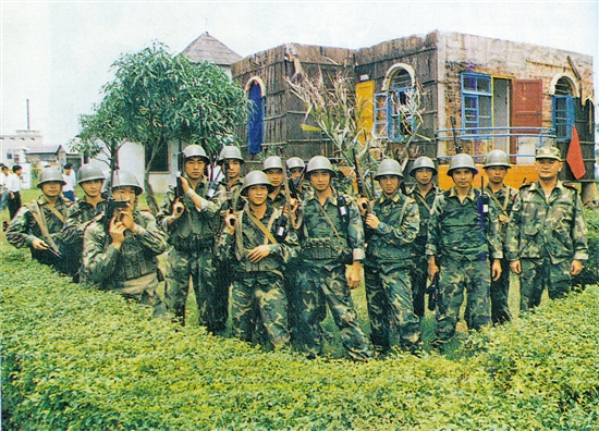 参战民警在南海金沙度假村曾经激战过的屋外留影(资料图)