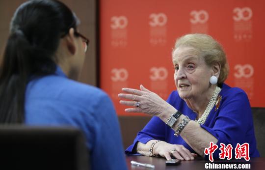 中新网南京6月18日电(记者朱晓颖钟升)18日在南京,美国第64任国务卿、美国历史上首位女国务卿马德琳·奥尔布赖特,在接受中国新闻社记者专访时表示,中美关系有分歧也有合作,应求“两国之同”。