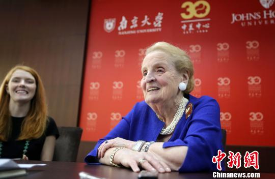 美国前国务卿马德琳·奥尔布赖特18日在南京接受中新社记者专访。朱晓颖摄