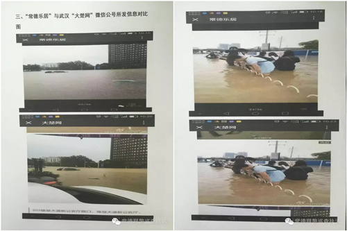 经查证,在该公众号发布的信息中,将两张武汉城市淹水的图片杂合常德雨情的图片进行编辑,夸大常德水情,点击量在短时间突破10万,误导了部分网民和社会民众,造成了不良影响。事发后,该公众号删除了所发布的不实信息。