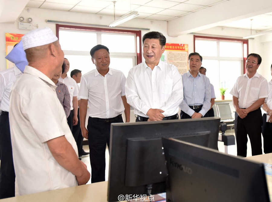 7月19日下午,习近平总书记来到宁浙创业园,了解创业园规划建设及浙江对口支援情况。 (摄影:新华社记者鞠鹏、李涛据新华社“新华视点”微博报道)