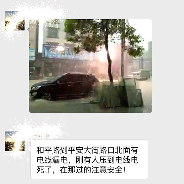 谣言二:和平路到平安大街路口北面有电线漏电,大家路过注意安全!并配图、视频。